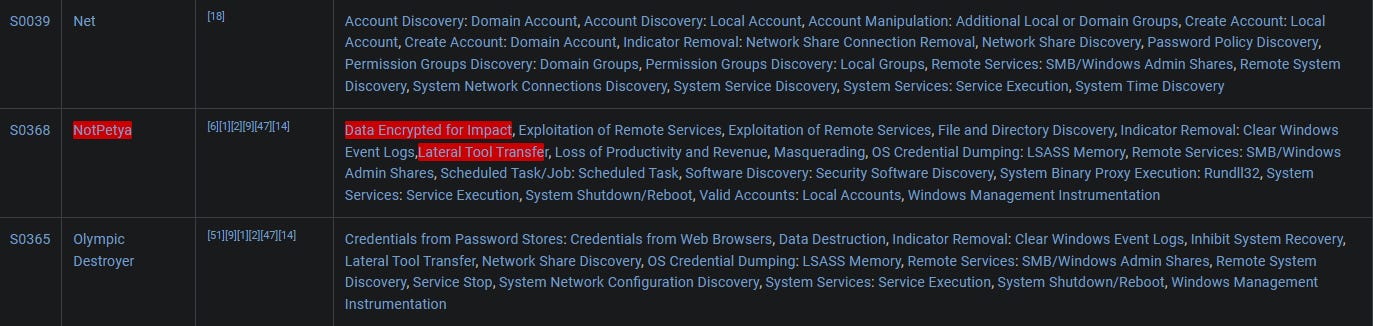 One of the most famous tools listed in the software matrix is NotPetya. Not only did it function like ransomware, but it was also a wiper disguised as ransomware. In addition to being a wiper, it had additional functionality that allowed it to propagate using EternalBlue. The researchers at Crowdstrike have published a detailed technical analysis of this tool.