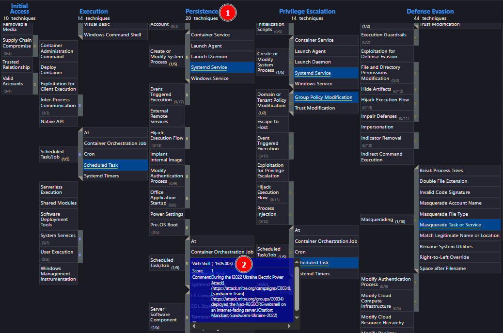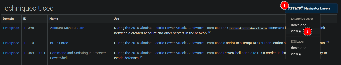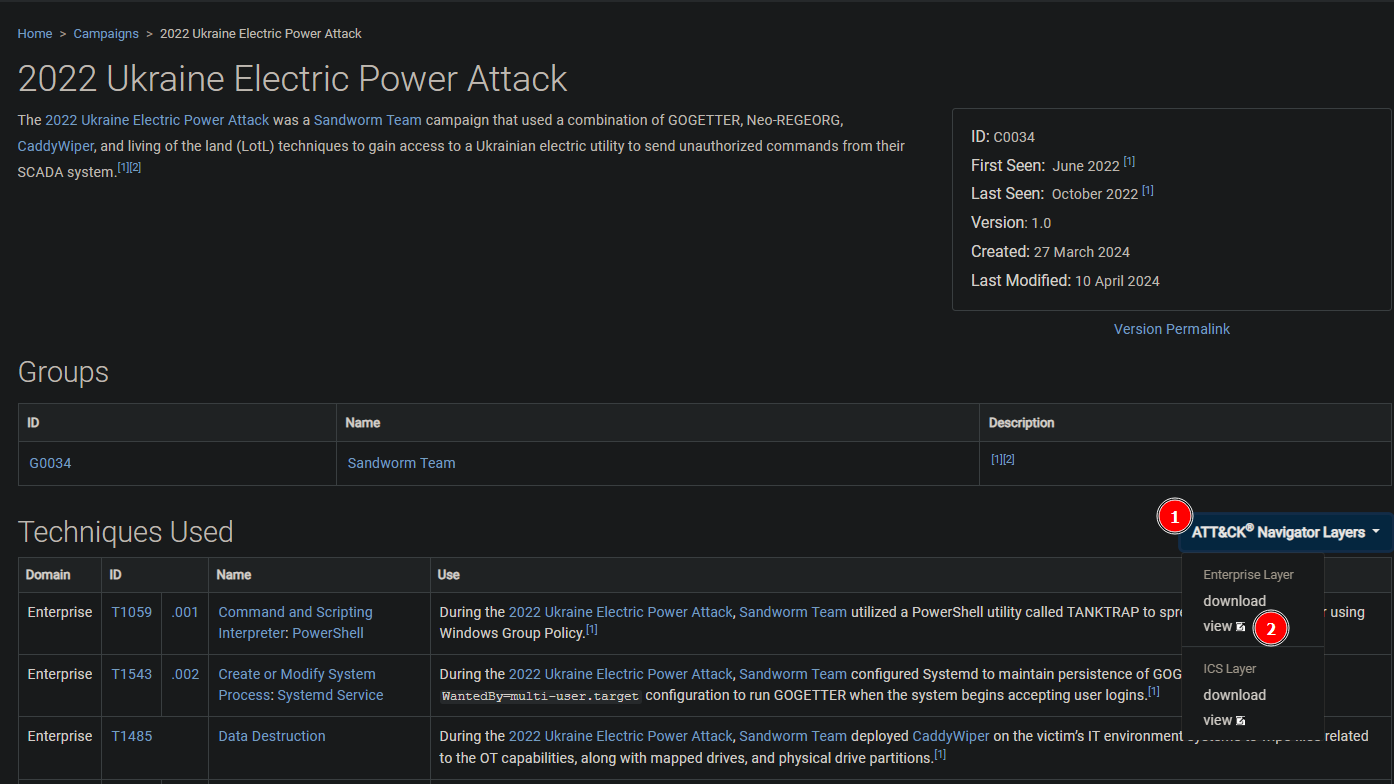 Open the ATT&CK Navigator [1] on the 2022 campaign page and view the Enterprise layer [2], just as we did in Task 2.