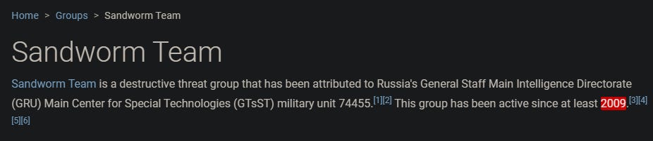 According to both the Mandiant report and MITRE, the Sandworm Team has been active since 2009.