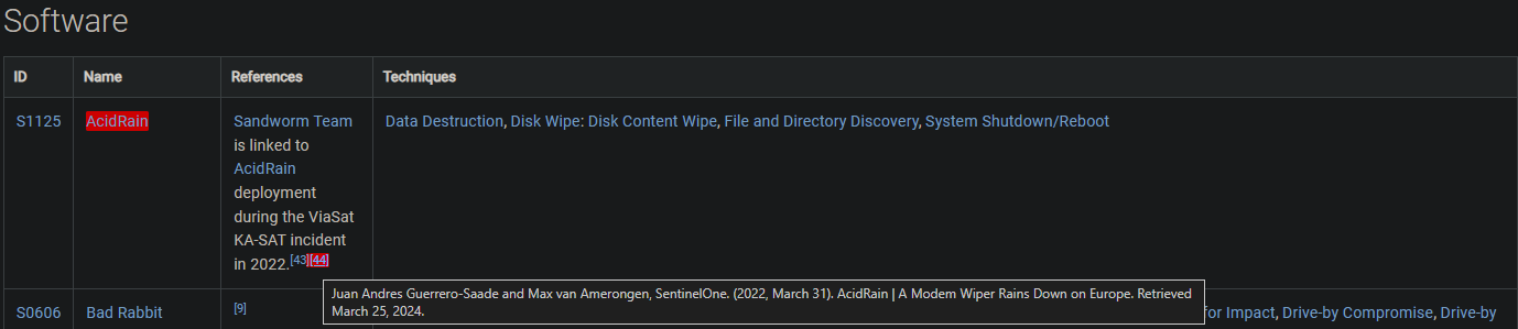 When viewing the references in the Software tool matrix, we see only one specific mention of "modems." In this case, it’s AcidRain, listed under reference [44].