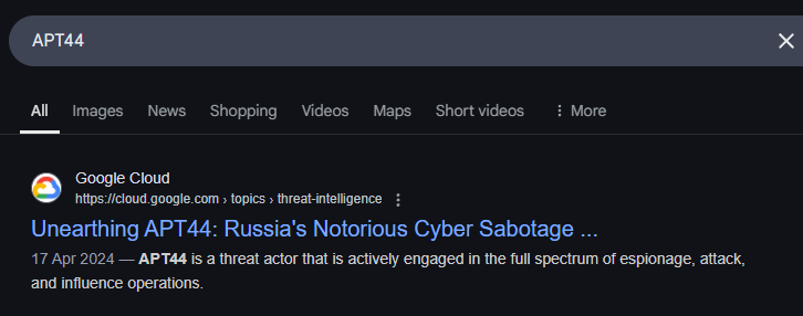Before diving into the questions, let’s first explore who Sandworm Team is and what their objectives are. A quick Google search for “APT44” leads us to an excellent threat intelligence blog by Google’s Mandiant, titled "Unearthing APT44: Russia’s Notorious Cyber Sabotage Unit Sandworm." This article provides a great overview of how this threat group operates.